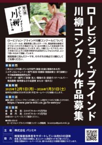 今年も、ロービジョン・ブラインド川柳コンクールが開催されます。当会もこのコンクールの協力団体です。